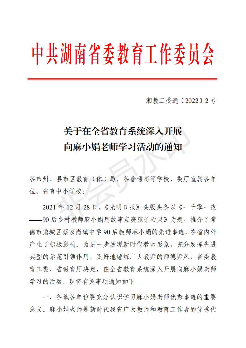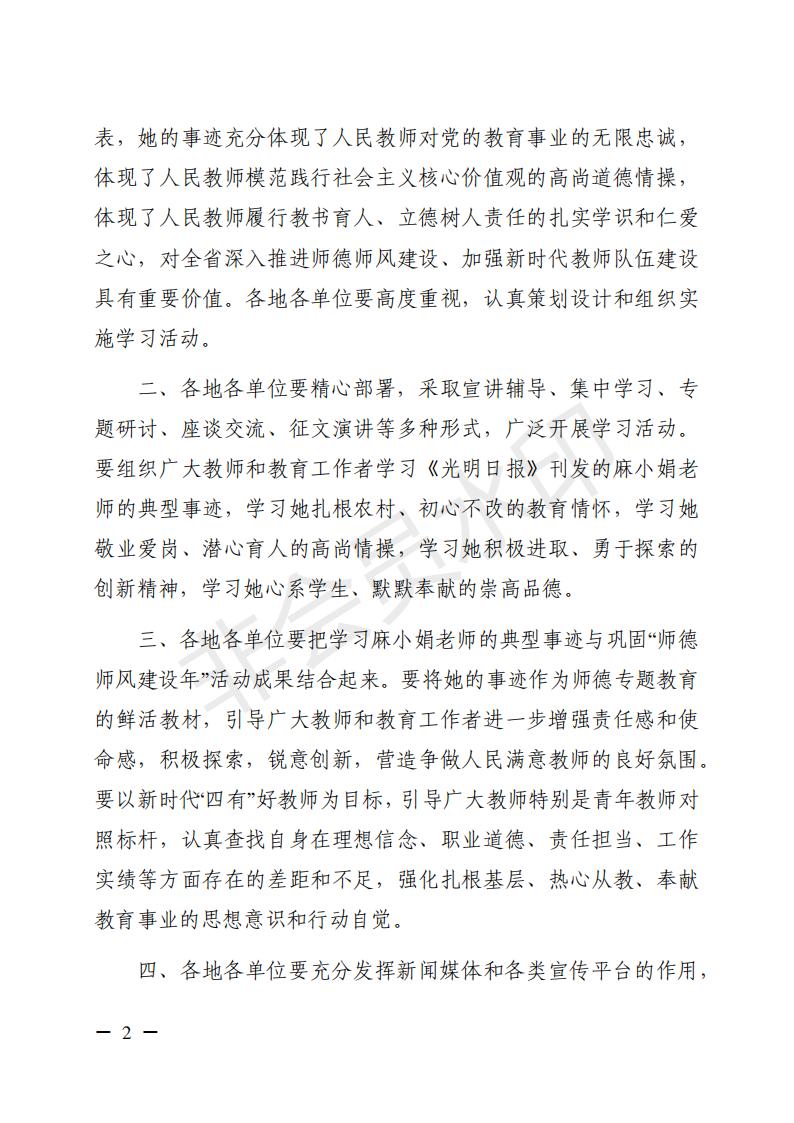 转发关于在全省教育系统深入开展 向麻小娟老师学习活动的通知