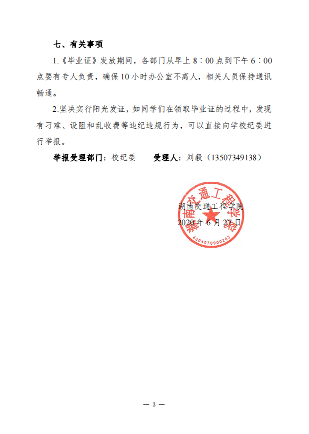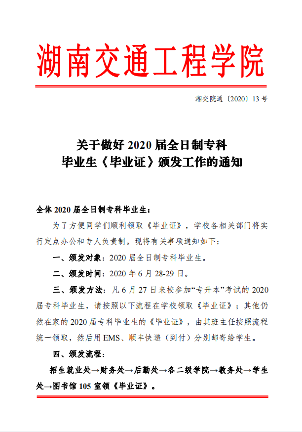 关于做好2020届全日制专科毕业生《毕业证》颁发工作的通知