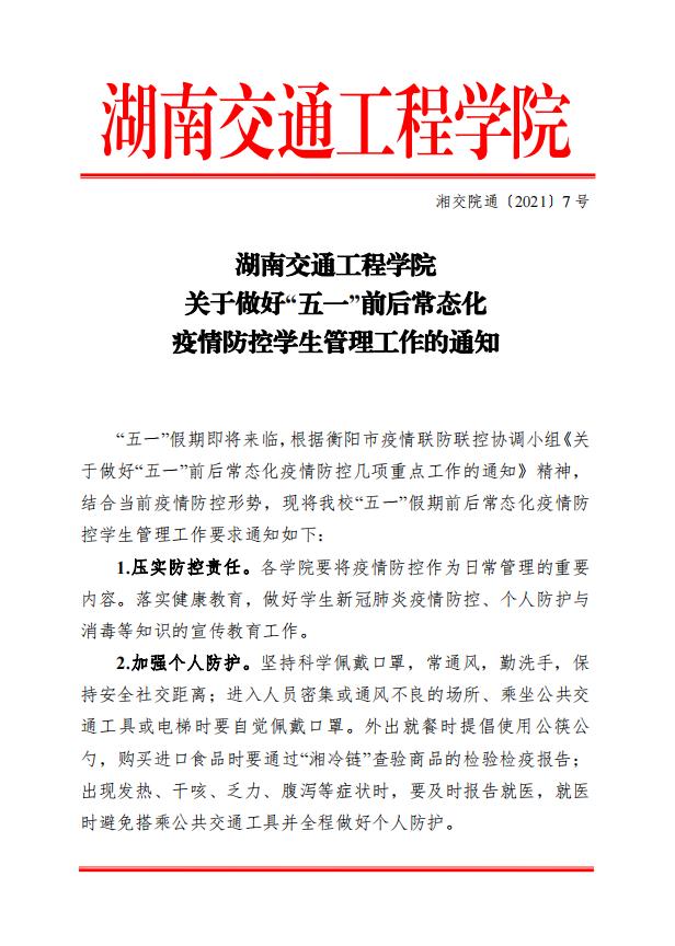 关于做好“五一”前后常态化疫情防控学生管理工作的通知