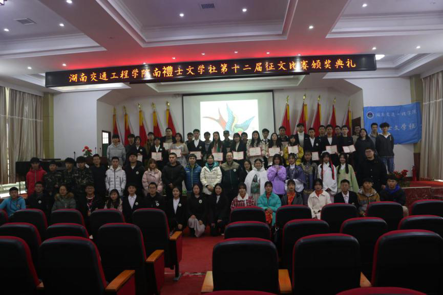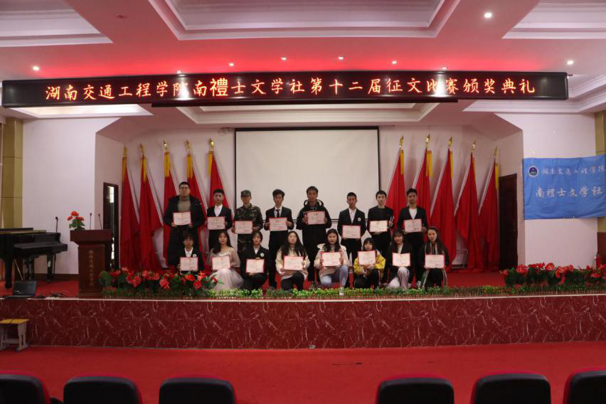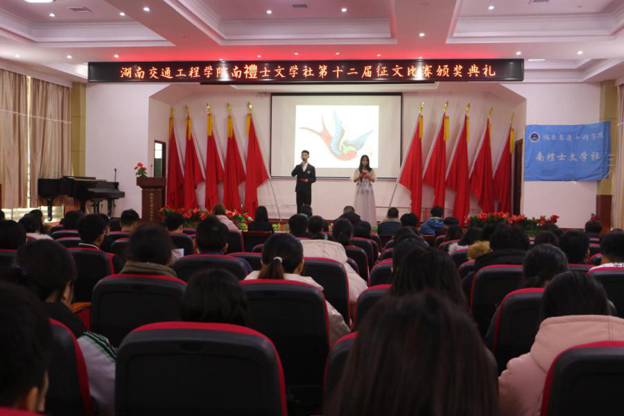 本网讯(通讯员 胡可)12月1日,南禮士文学社第十二届征文比赛“看你我青春之际,扬交院学子风采”颁奖典礼在航母楼一楼会议室隆重举行。校党委委员、党务工作部部长、护理学院党总支书记兼南禮士文学社指导老师邓丽,图书馆老师张海兵、万魏,共青团beat365手机版官方网站委员会李丽平,衡高文委主席唐震民,社团联合会负责人唐果及学校其他社团负责人出席颁奖典礼,全体社团成员到会。