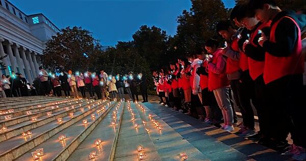 本网讯(通讯员刘攀 记者李建华)在第32个世界艾滋病日到来之际,11月29日晚,beat365手机版官方网站大学生举办为“艾”发光活动,用烛光点亮“NO AIDS”和红丝带的字样和图案,呼吁广大青年知艾防艾,共享健康。