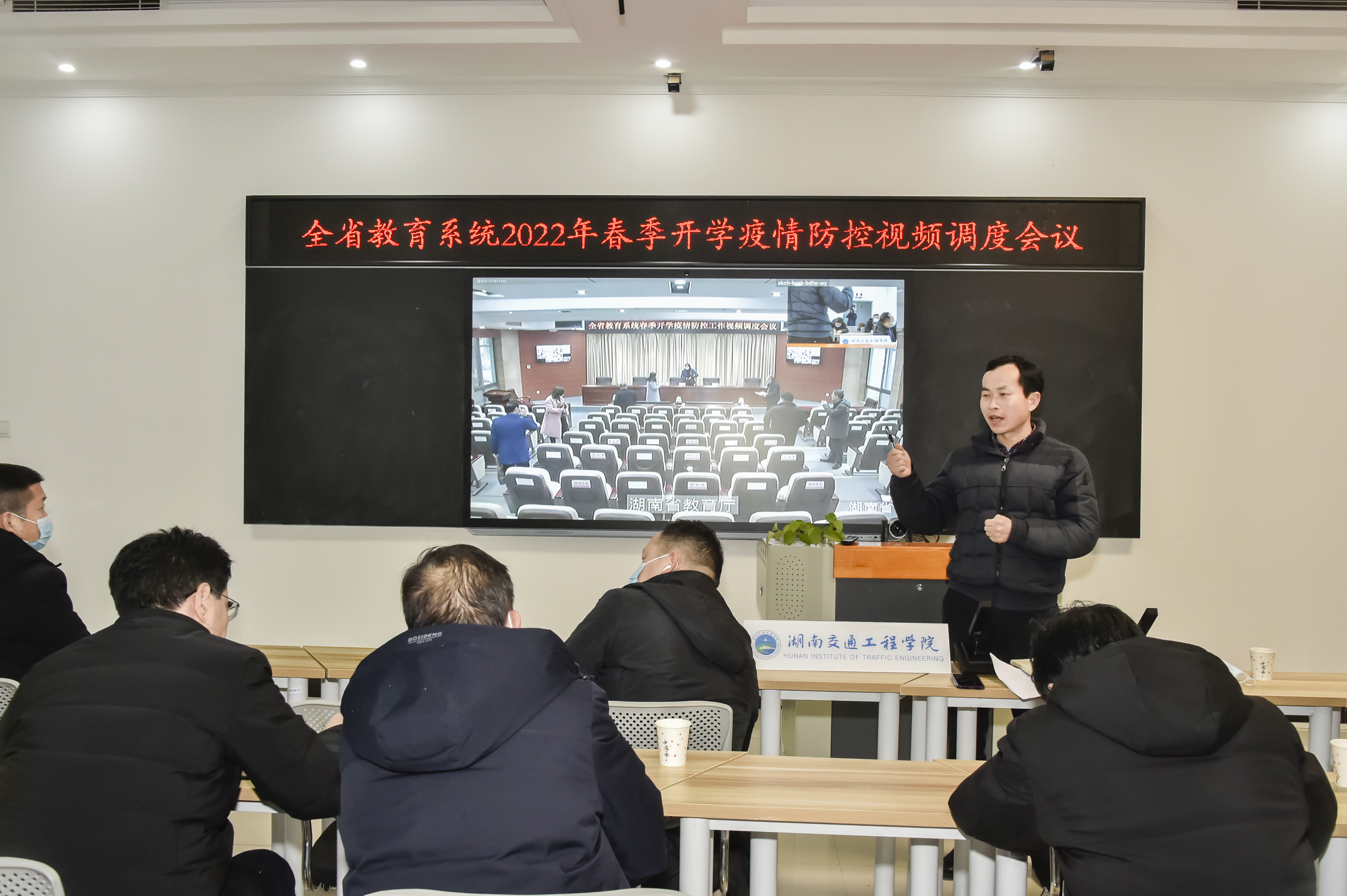 本网讯(记者 赵红深 摄影 李建华2月14日下午,省教育厅召开2022年春季开学疫情防控工作视频调度会议,省教育厅巡视员雷桂平主持会议,省教育厅副厅长左清出席会议并讲话。beat365设置分会场,校长陈治亚、党委书记刘文君、常务副校长彭文武、纪委书记刘毅、副校长余孟辉出席分会场会议,学校疫情防控工作领导小组全体成员、疫情防控工作专班成员,各二级学院党政负责人参加了视频会议的收看。