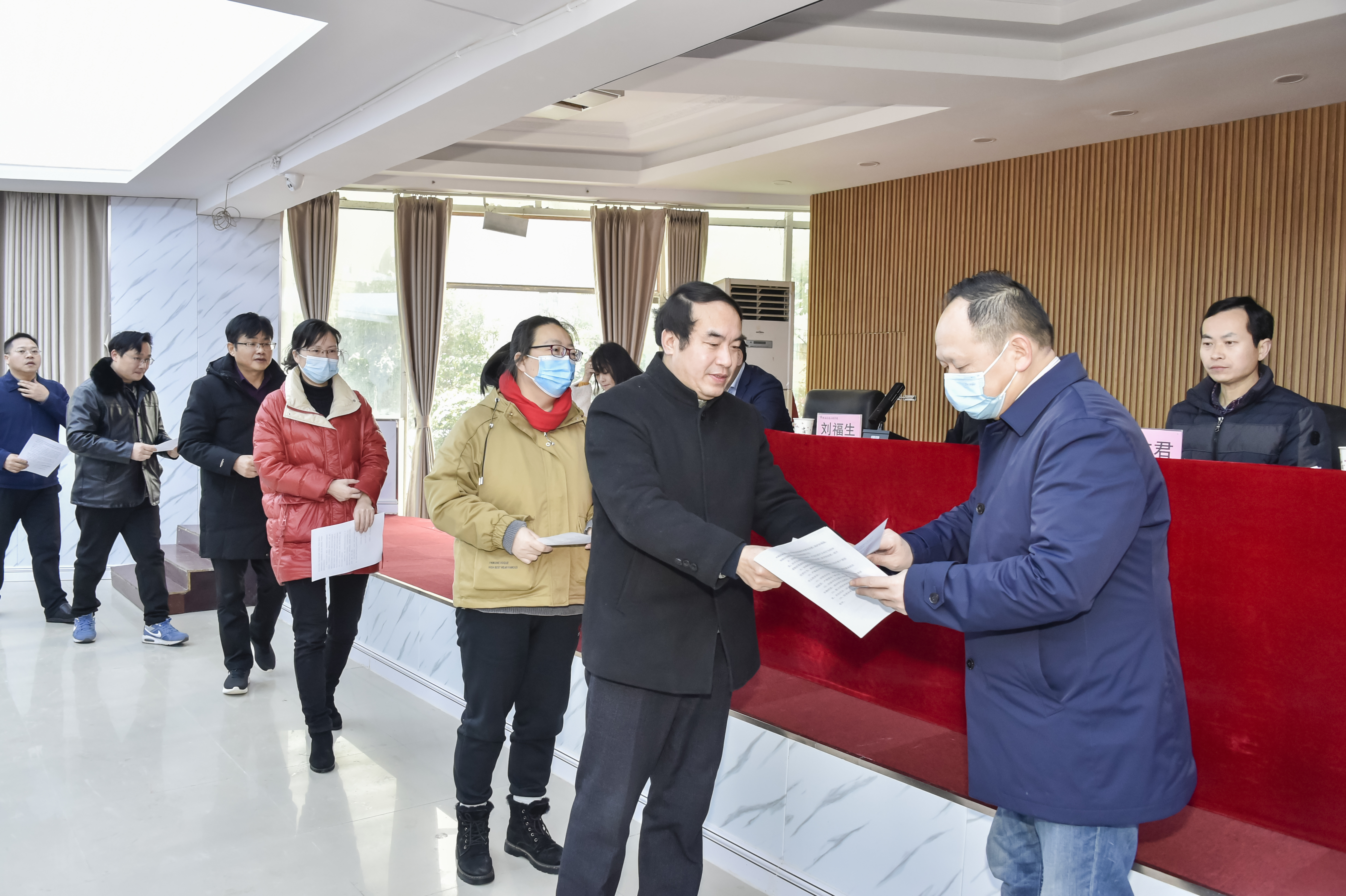 接着,各相关部门向主管领导递交安全责任状:各食堂档口负责人向食安委、保卫处递交安全管理责任状; 学生处、保卫处主要负责人,各二级学院书记向主管副校长余孟辉递交综合治理安全管理责任状; 余孟辉向刘福生递交安全管理责任状。