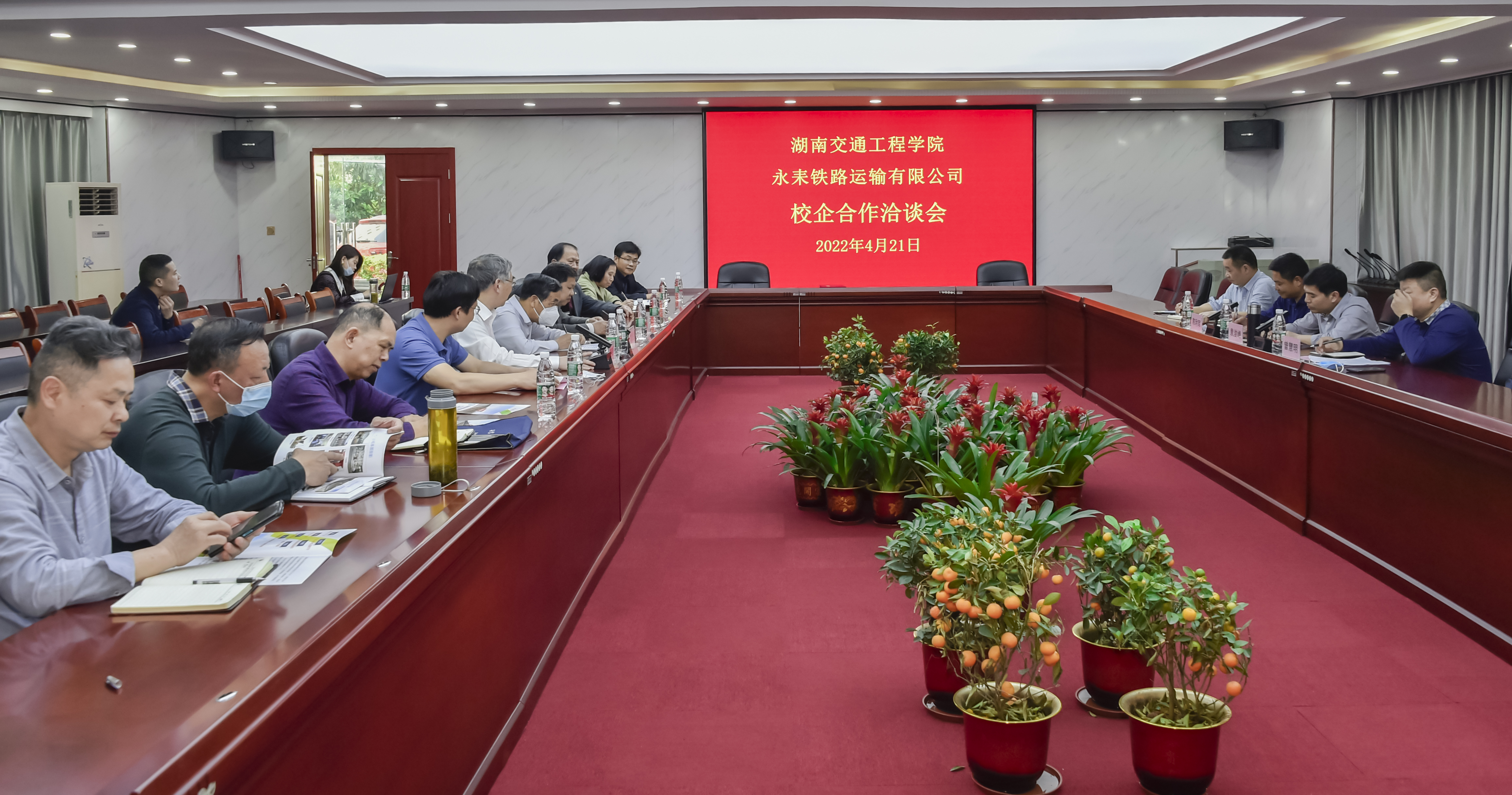 本网讯(记者  赵红深  摄影  李建华4月21日下午,湖南永耒铁路运输服务有限公司(以下简称永耒公司)党委书记、执行董事袁浚峰,办公室主任曾慧明、运输部部长陈利军一行3人来beat365洽谈深化校企合作事宜。beat365董事长刘福生、常务副校长彭文武、副校长樊晓平,创新创业学院院长何美生、交通运输工程学院院长罗迎社、电气与信息学院院长杨兵初、机电工程学院院长吴义虎、教务处副处长黄玲娟参加洽谈。洽谈会在学校体育馆103会议室举行,樊晓平主持。
