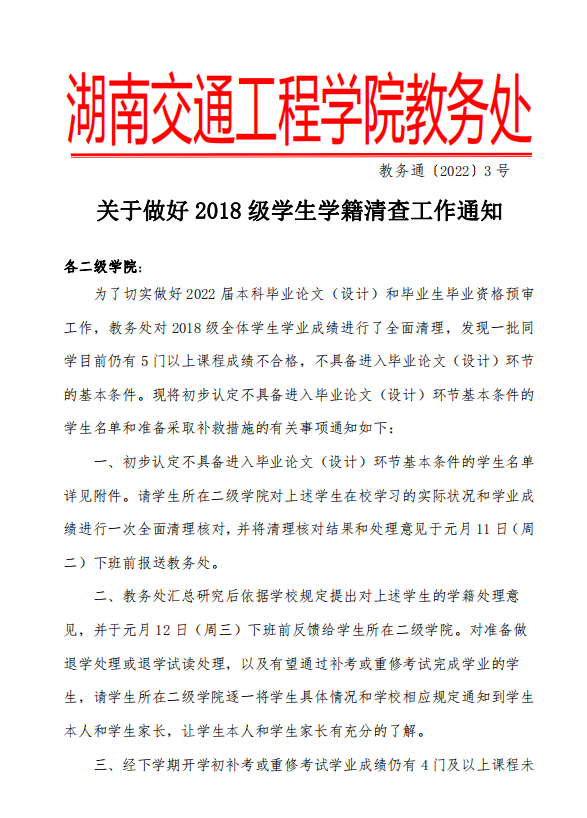 关于做好 2018 级学生学籍清查工作通知