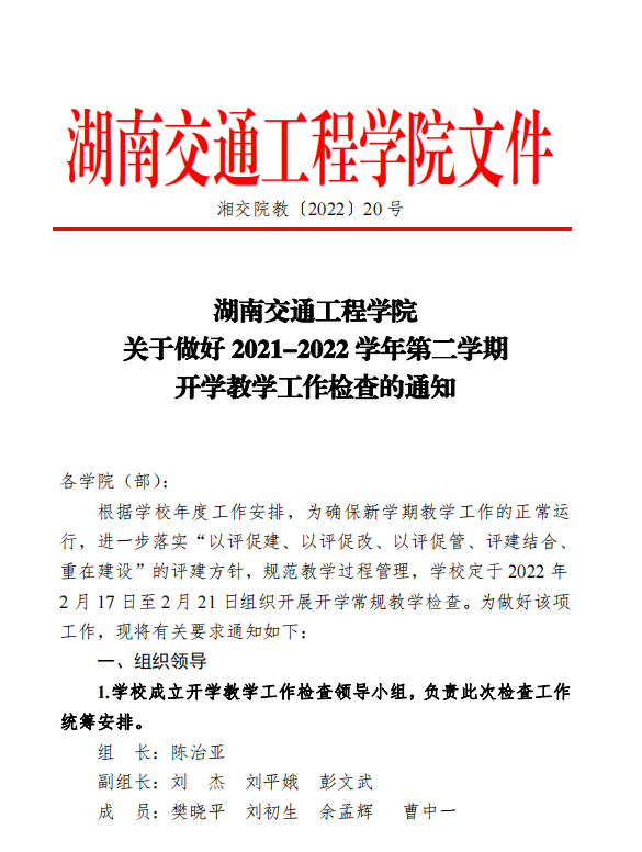 关于做好 2021-2022 学年第二学期 开学教学工作检查的通知