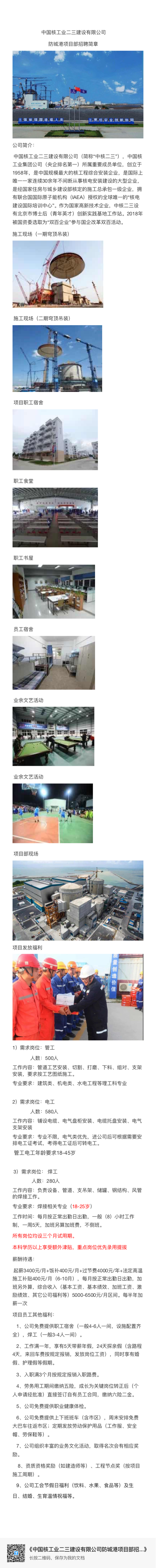 中国核工业二三建设有限公司 防城港项目部招聘简章
