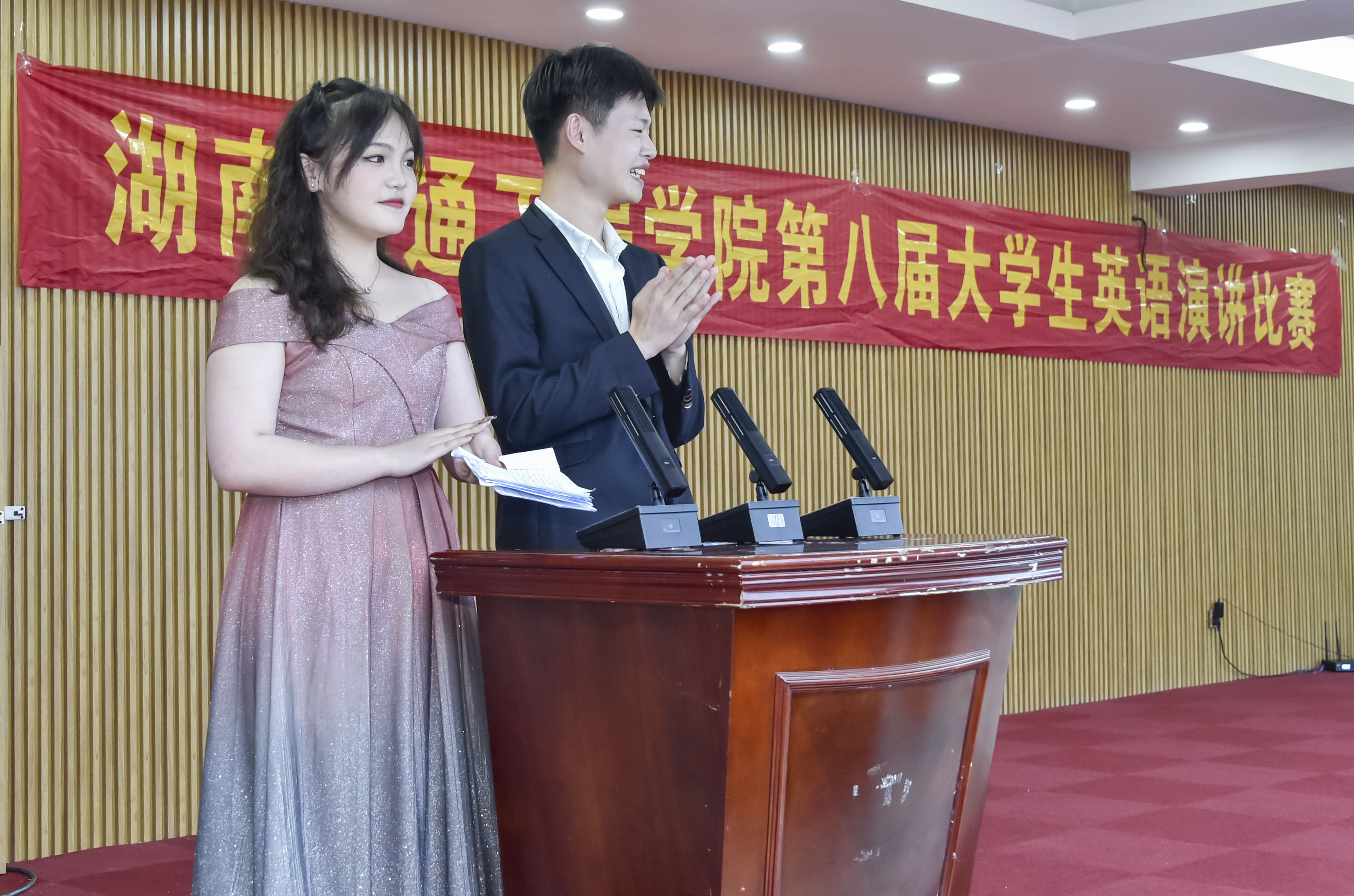 本网讯(通讯员 刘彪  王芳 记者 赵红深 摄影 李建华)为促进beat365英语学科素质教育的发展,激发beat365学生的英语学习热情,营造浓郁的英语文化氛围并展现当代大学生的青春风采,同时为湖南省普通高等学校大学生英语演讲比赛选拔参赛选手,5月26日晚6时30分,学校在体育馆101会议室举行以“China's wisdom for the world” 为主题的beat365手机版官方网站第八届大学生英语演讲赛决赛暨省级选拔赛。本届比赛由教务处主办,人文与艺术学院承办。副校长樊晓平出席开赛式并致辞,相关职能部门和部分学院领导出席颁奖典礼,并为获奖选手颁奖。人文与艺术学院副院长刘彪主持。