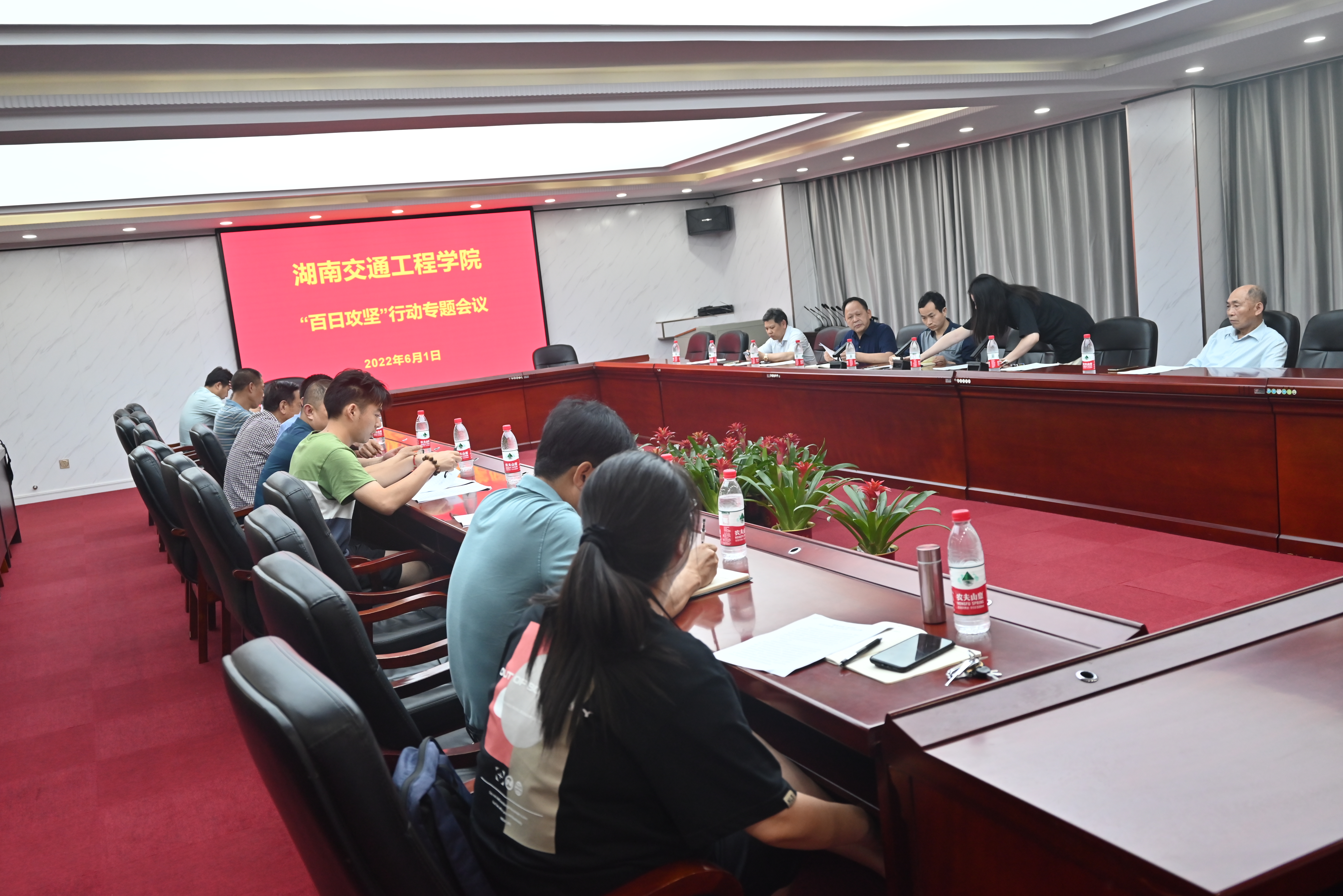 保卫处、后勤处、食安会、基建处、教务处、设备处、科技处、宣传部、学工处、校团委等部门负责人,各二级学院党总支书记参加会议。(审核:刘文君)