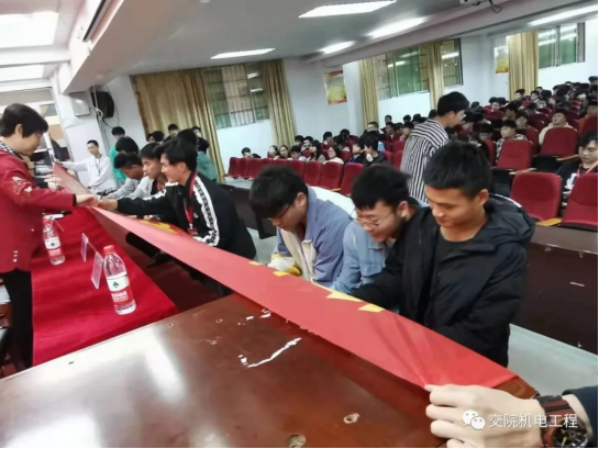 3月25日下午4点30分,由机电工程学院主办、机电工程学院团总支、学生会、新媒体中心协办举行了以“迎接本科评估、促进学风建设、创建和谐宿舍、争做文明新人”为主题的大型签名寄语活动及第四届宿舍文化艺术节开幕式在体育馆101会议室顺利举行。