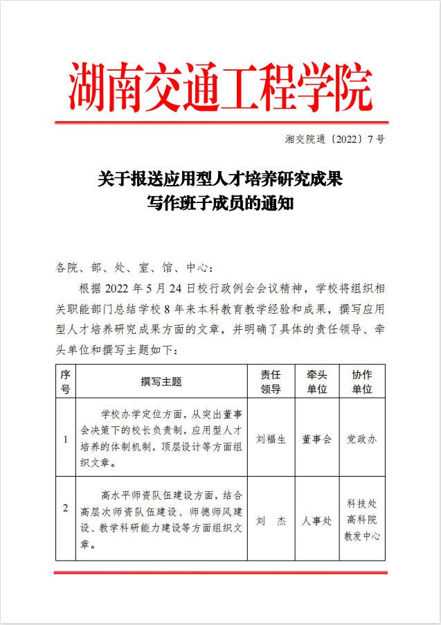 关于报送应用型人才培养研究成果写作班子成员的通知