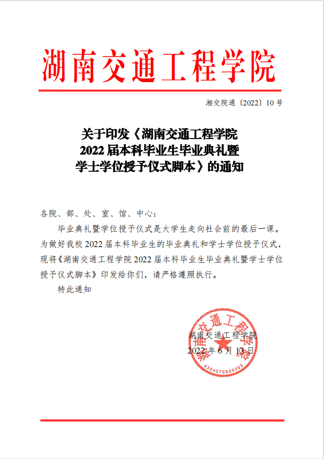 关于印发《beat365手机版官方网站2022 届本科毕业生毕业典礼暨学士学位授予仪式脚本》的通知