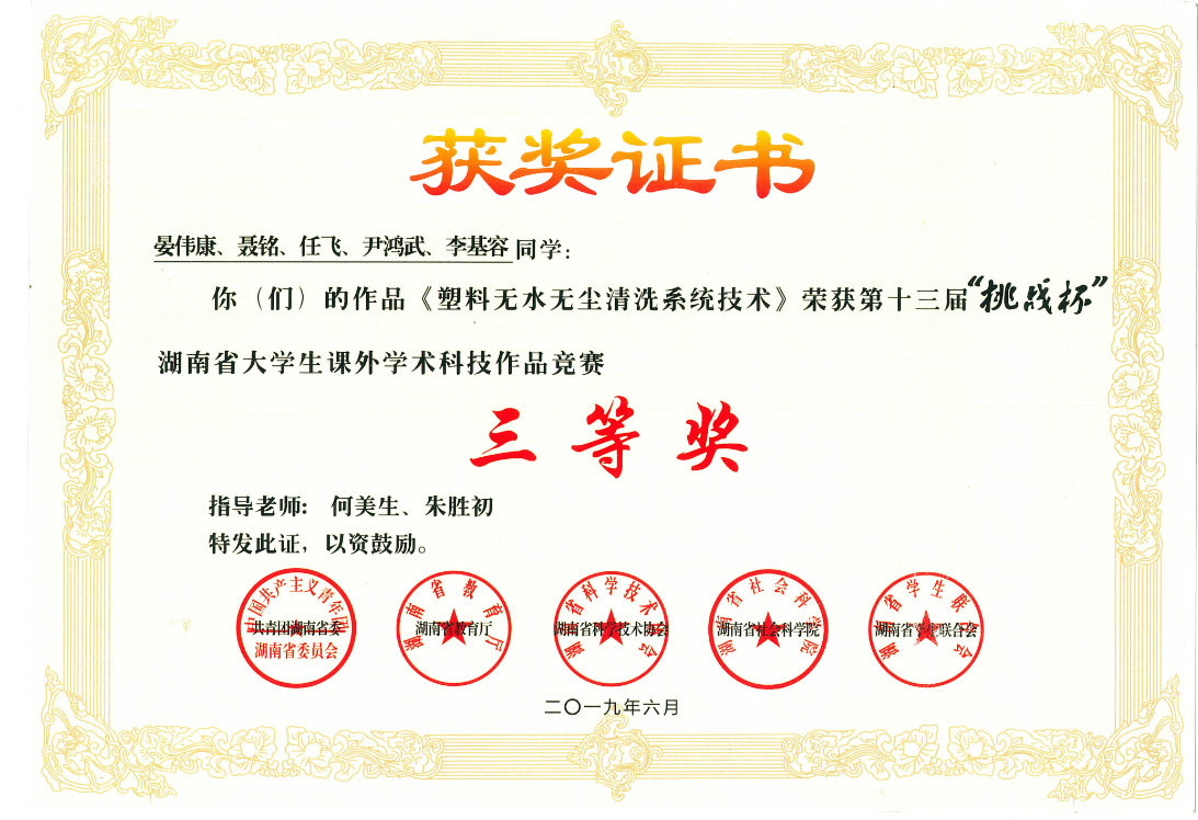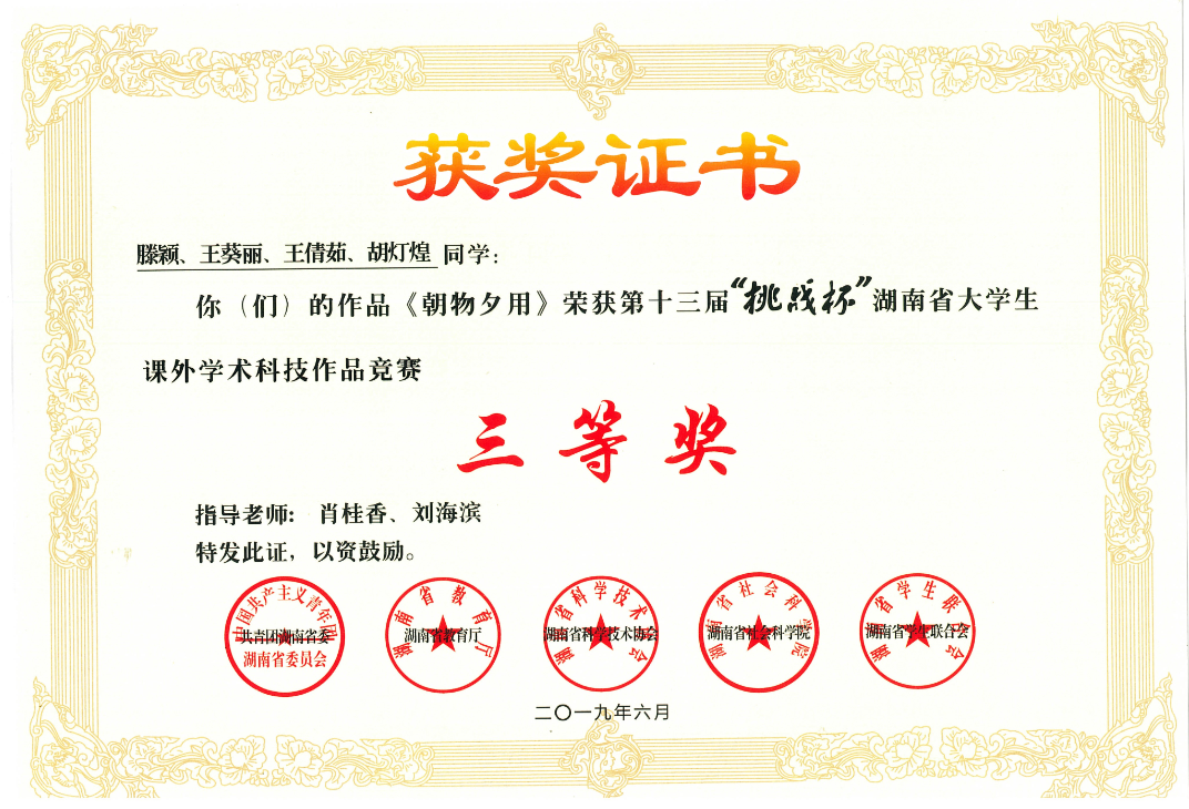 beat365喜获2019年第十三届“挑战杯”湖南省大学生课外学术科技作品大赛6个奖项