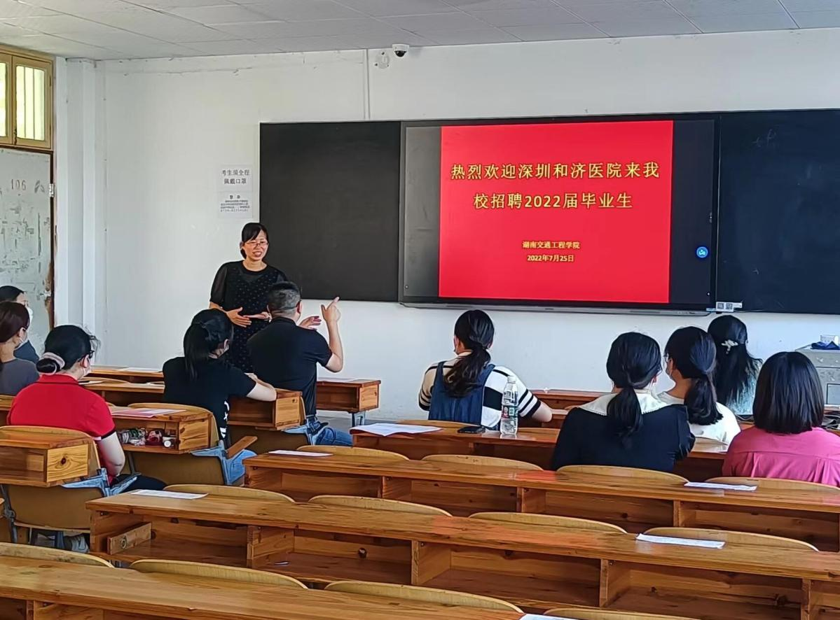 2022年7月25日上午,医学技术与护理学院在教学楼106教室举行深圳和济医院专场招聘会。