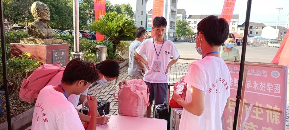 通过学院领导、老师们的悉心指导与安排,新生接待工作从校外的车站服务站点到新生报到接待处,再到各个缴费点、军训服领取处,直至最后到达宿舍,每个流程都有专门志愿者在指引,让学弟学妹们初入校园就感受到医护大家庭的温暖。面对新生或新生家长的疑惑时,学院的领导、老师和志愿者都会耐心的解答。学院为了在迎新时更好的减轻新同学的“担子”,医护学院的工作人员和志愿者早早的支好了棚子为他们寄放和托运行李。