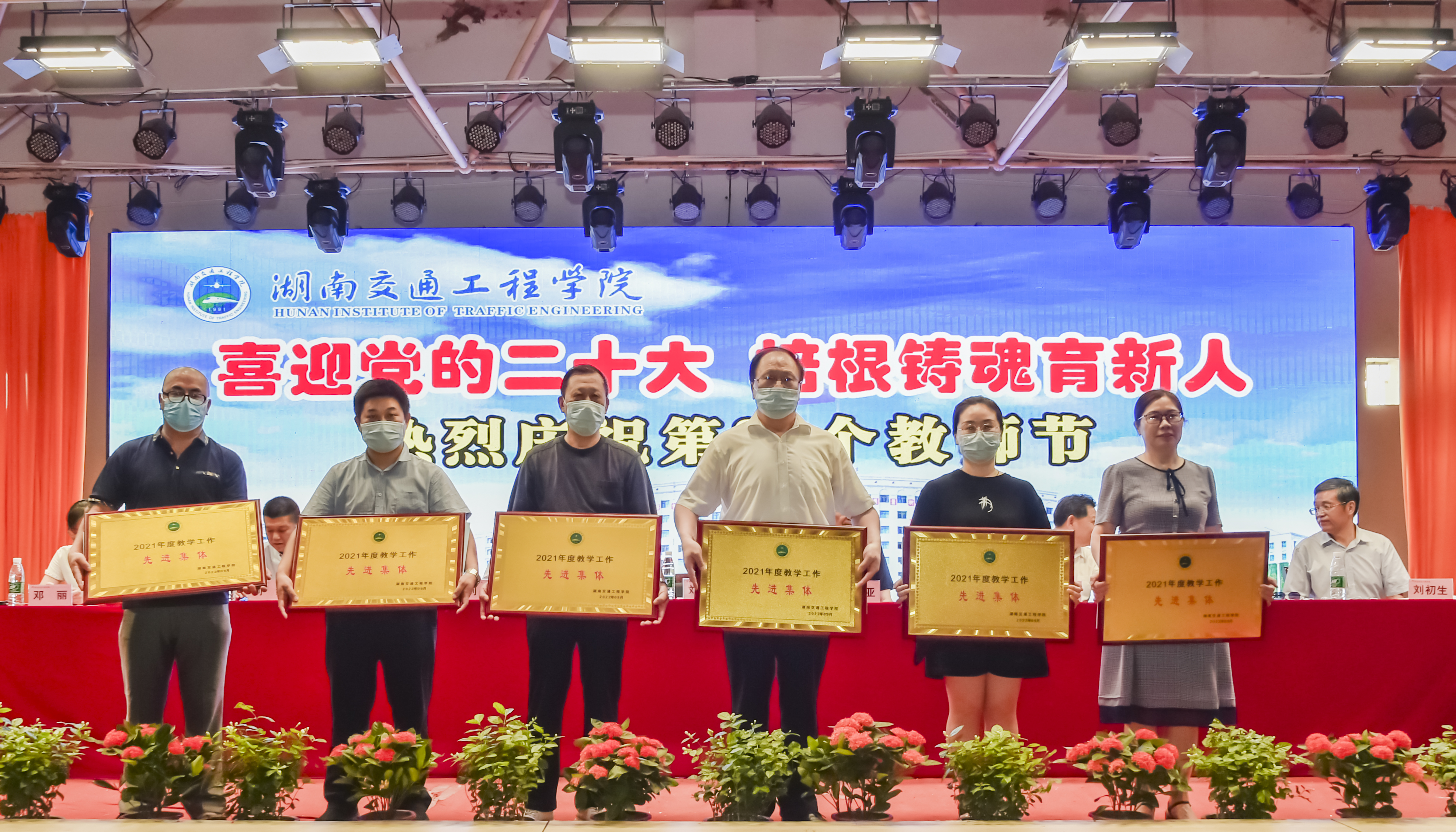 会上,常务副校长彭文武宣读了9个表彰决定:  2021年度先进教学工作单位的表彰决定;2021-2022学年优秀教师、优秀教育工作者的表彰决定;2021年度考核先进集体和先进个人的表彰决定;省级一流课程一流专业的表彰决定;2022年省级教学成果奖的表彰决定;“说专业”“说课程”决赛结果与奖励决定;课堂教学质量优秀奖表彰决定;毕业论文(设计)优秀指导老师表彰决定;《beat365手机版官方网站关于发放2021-2022年度科研成果奖励的决定》。校领导分批次为获奖集体和个人颁奖。