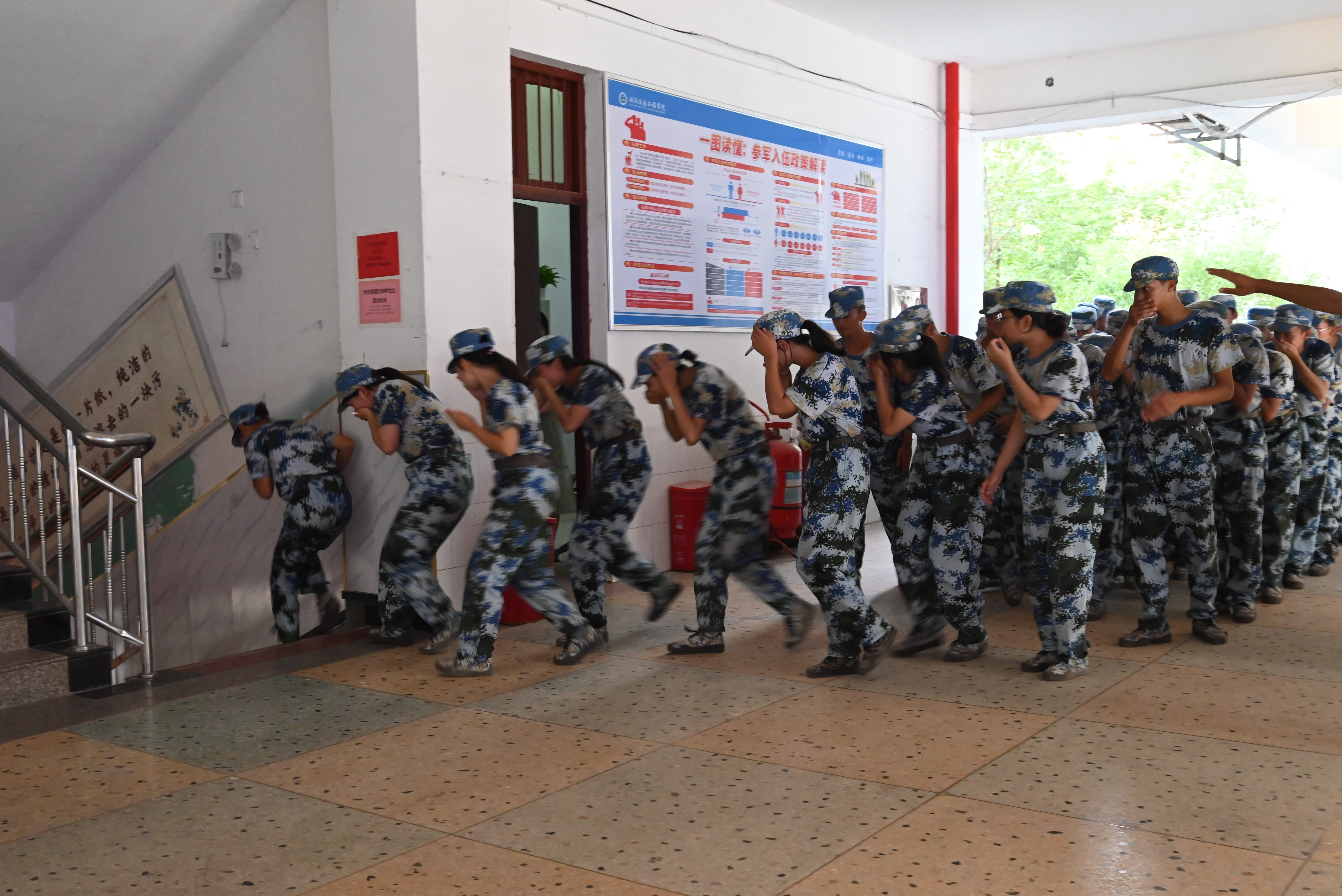 下午4时,在教学楼和田径场举行消防演练。保卫处相关工作人员和带训教官为同学们作了如何避险、如何逃生、如何使用灭火器等方面的理论讲解,并实战演练了灭火器灭火等项目。参加演练的2022级新生在教学楼二楼进行了火灾应急疏散逃生、在田径场进行了使用干粉灭火器灭火等科目的演练。