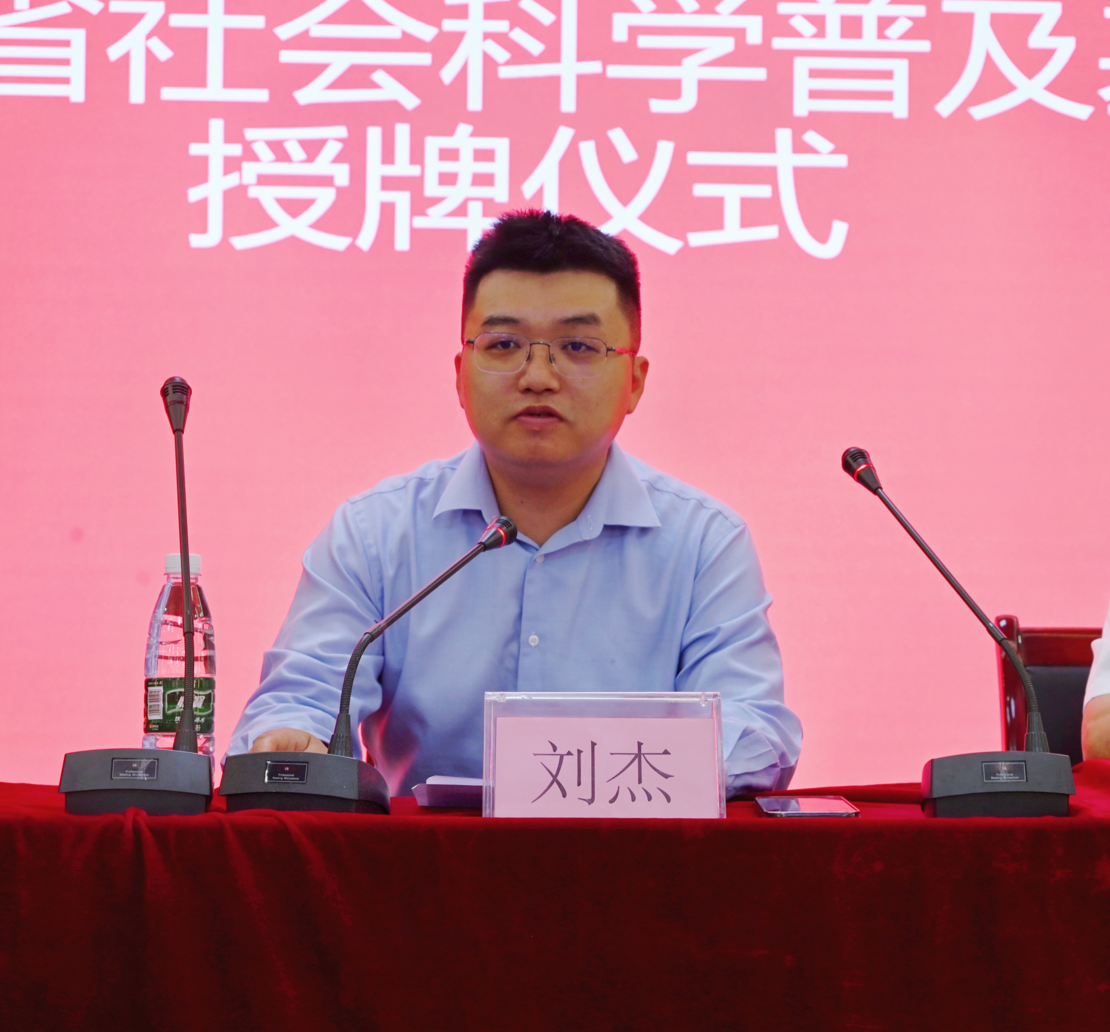 罗东云为基地建设单位授牌;beat365科技处副处长、科普基地负责人 和基地合作建设单位负责人黎阳接牌。