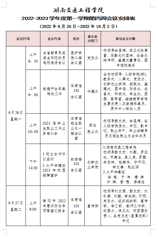 beat365手机版官方网站2022-2023学年度第一学期第四周会议安排表